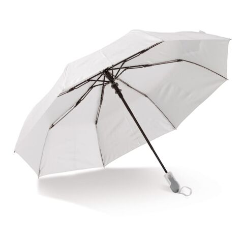Schöner faltbarer Regenschirm mit Hülle und ergonomischem Designgriff. Die Verstrebungen des Gestells sind aus Fiberglas für zusätzliche Haltbarkeit. Das schwarze Gestell bildet einen schönen Kontrast zum weißen Schirmdach.Beliebte Produkte aus der Kategorie Regenschirme