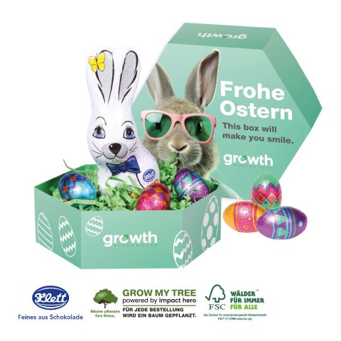 Oster-Highlight für Kunden und Mitarbeiter! Das Osternest mit leckeren Vollmilch Schokoladeneiern und einem feinen 40 g Osterhasen ist individuell bedruckbar. Liebevoll von Hand gefertigt und mit Ostergras dekoriert entsteht ein wunderbares Osterpräsent.. Produktdetails: Schokoladenmischung von Klett, in einem individuell bedruckbaren Osternest aus hochwertiger Kartonage, mit Ostergras dekoriert.. Nachhaltigkeit: Für jede Bestellung mit uns wird ein Baum über GROW MY TREE gepflanzt. Wir verwenden FSC® zertifizierten Karton aus nachhaltiger Forstwirtschaft und anderen kontrollierten Quellen.Beliebte Produkte aus der Kategorie Ostern
